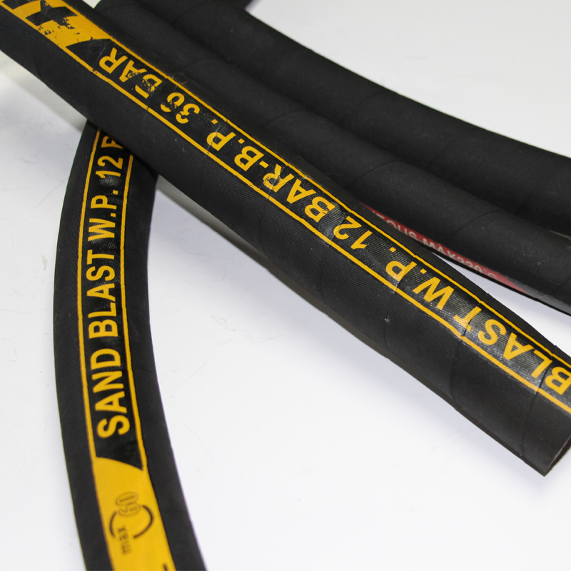 Sandblast hose Specially designed hose for use in all abrasive blast applications, Designed with an extra thick, extremely abrasion resistant tube to extend life in sandblasting service. Designed for high velocity transfer of sand, steel shot, and other abrasive materials seen in building maintenance, restoration, or the cleaning and finishing of metal parts, stone, or glass. It is a kink resistant sandblast hose that will withstand external abuse and internal abrasion. Its static conductive tube dissipates static electricity to prevent dangerous shocks.